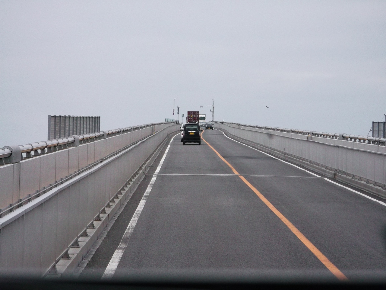 江島大橋は、汽水湖の中海に浮かぶ松江市の江島と鳥取県境港市を結び、