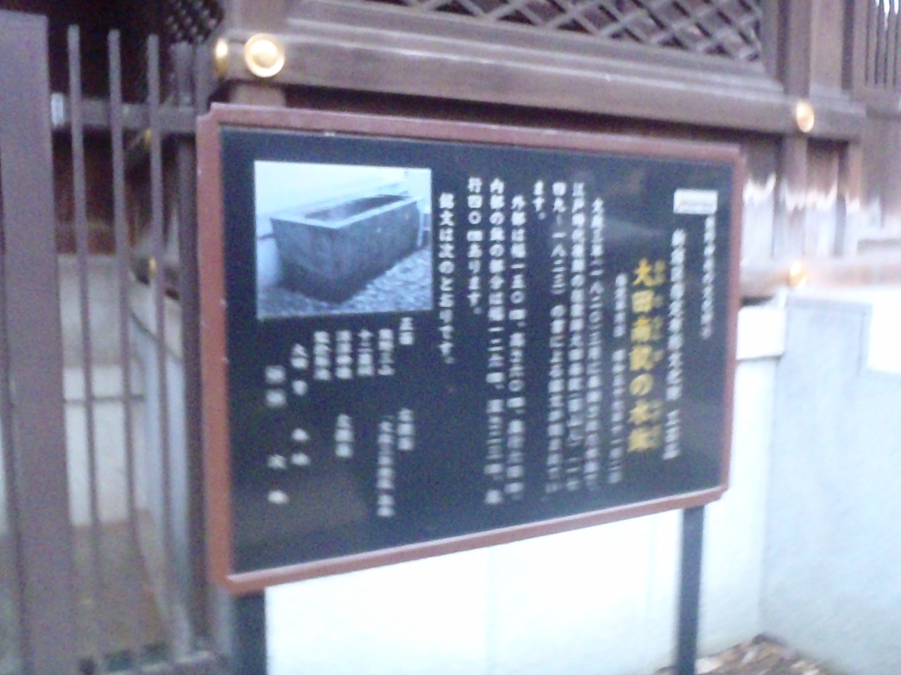 掲示板によると文政3年狂歌師大田南畝の書による銘文が刻まれている水鉢であるとのことです。