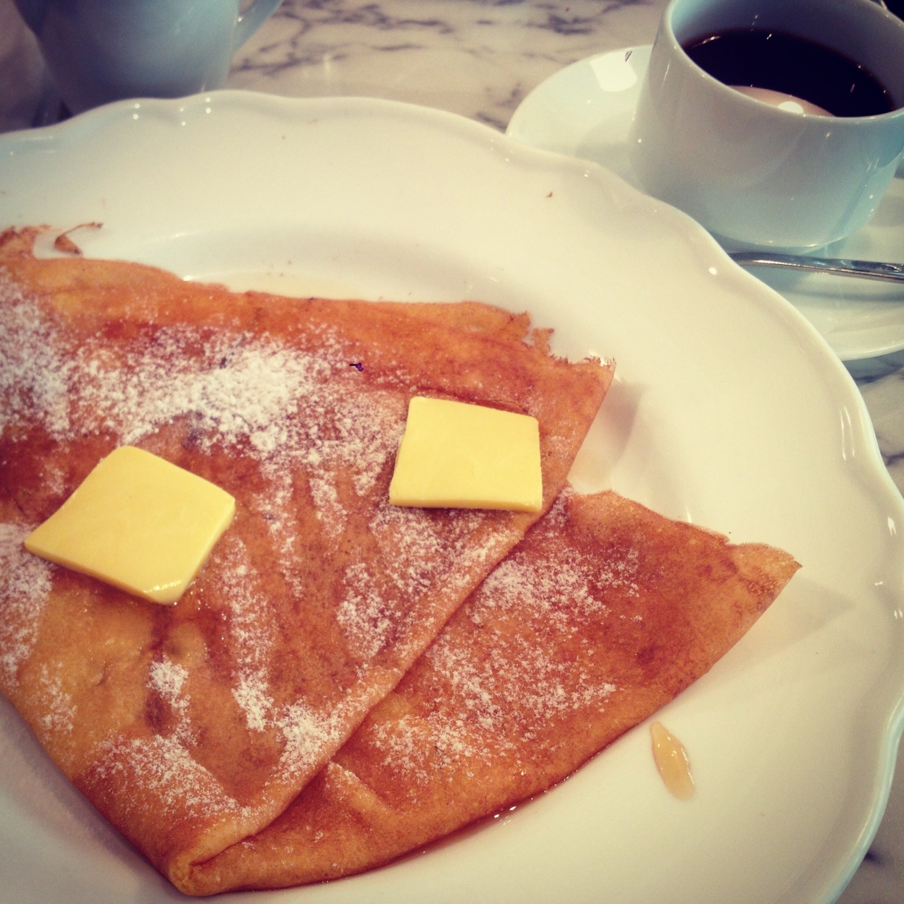 私は1番シンプルな塩バターとメープルシロップのクレープをいただきました。バターの塩気とメープルの甘さが合ってとても美味しかったです。もう少しクレープをかりかりに焼いてもらうともっと美味しいだろうなーと思いましたが、姉と2人で利用して満足でした。