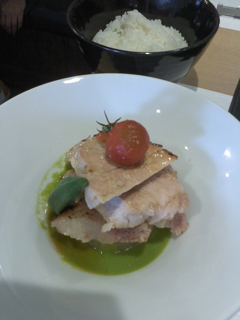 同行者は同じソースを使ったカマスの塩焼きに、頭が付いているなんて…