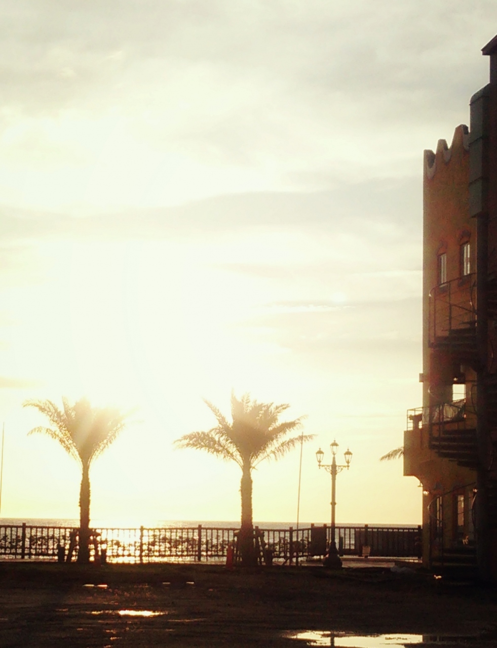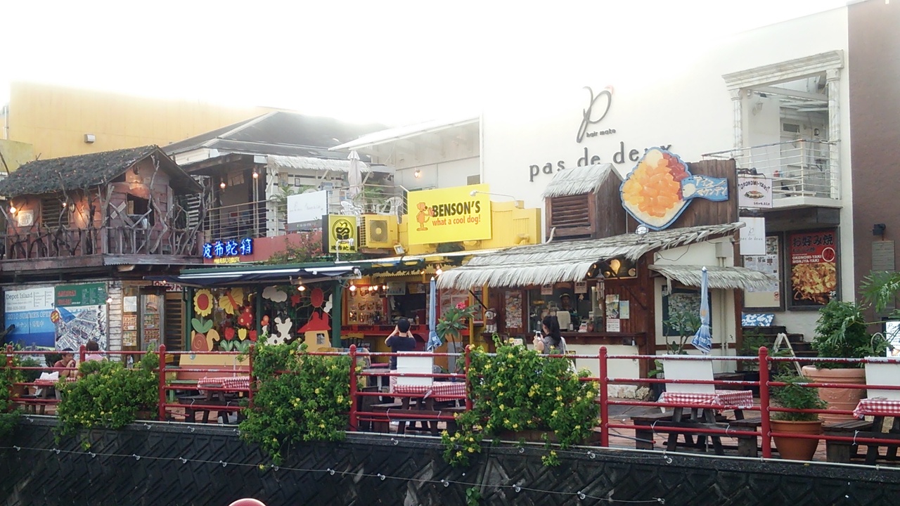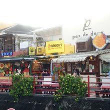 アメリカンビレッジだけに、基本的にはアメリカンな雰囲気のショップや飲食店が多いです。外国人客が多かった。でも浜の方へ行くと、ハノンというパンケーキのかわいいお店がありました!ここはアメリカというよりギリシャっぽい。(行ったことないけど)
