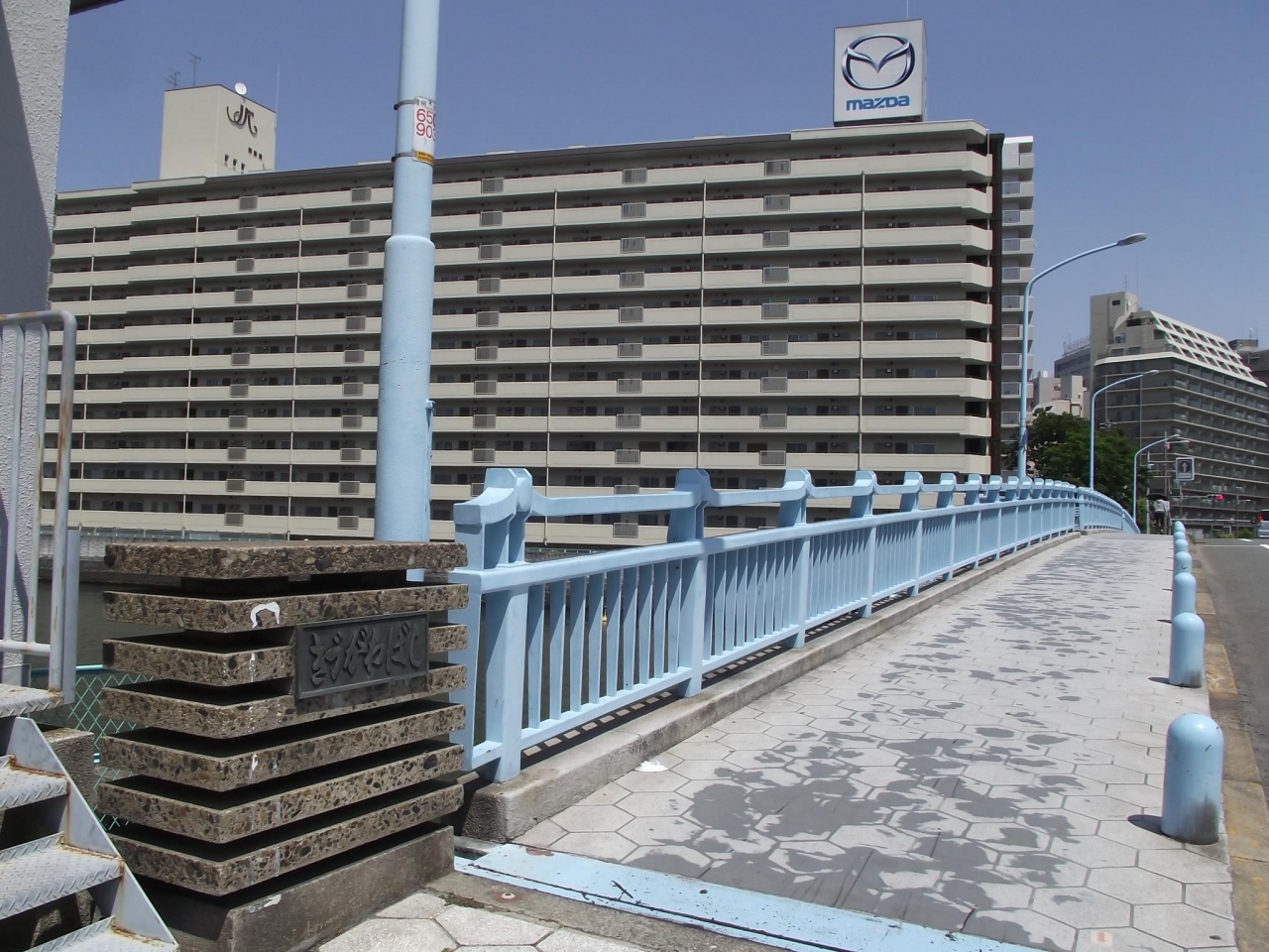 この橋の幅員は21.6mなので、取分け広くはないが、親柱や欄干が高くなく簡素に出来ているからかも知れないと思った。