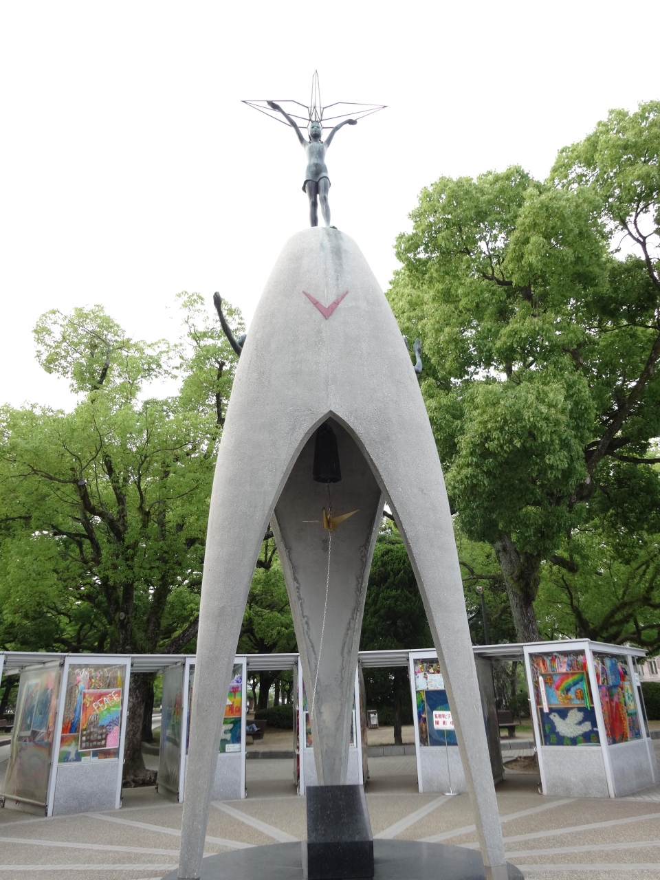 2歳の時被爆し、後に白血病を患い亡くなった佐々木禎子さんを悼んで、同級生たちの呼び掛けによって作られた慰霊碑です。 折り鶴をかかげる少女のブロンズ像を見上げると平和を祈らずには居れません。罪なき少年少女が犠牲になる日が二度と来ないよう、胸に刻まなければならないと感じました。