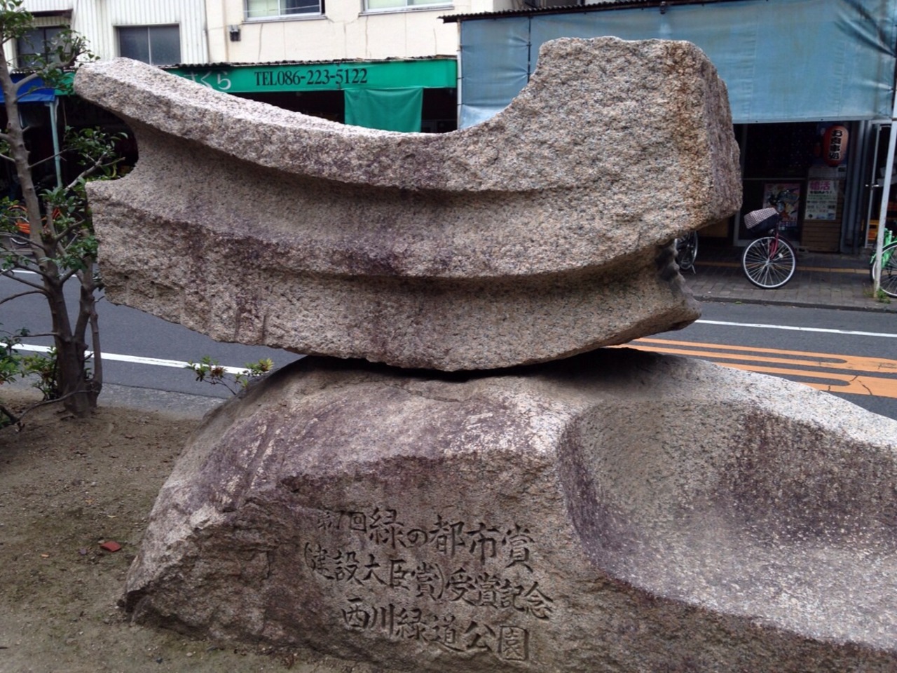 岡山駅から岡山城方面に歩いていると西川という細めの川に突き当たりますが、この川沿いに整備されている公園のようです。