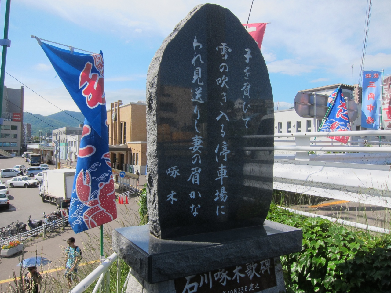 明治40年、石川啄木が身を寄せた姉夫婦がこのあたりに住んでいたそうです。よく考えてみれば、駅前の一等地ですが、それもそのはず、姉夫婦の夫、山本千三郎氏は小樽駅の駅長さんだったそうです。ただ、啄木本人はというと、小樽で新聞記者をしていたそうですが、車内の内紛に巻き込まれて、札幌から移ってわずか数ヶ月で釧路へと移ったそうです。