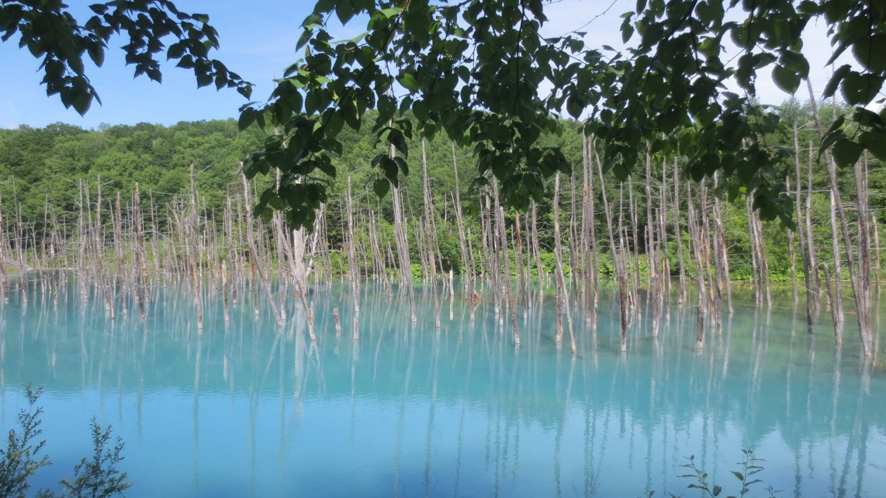 前回来たときは雨だったので、きれいな青い池をみれませんでしたが、今回は晴れていたのでとてもきれいに見えてよかったです。