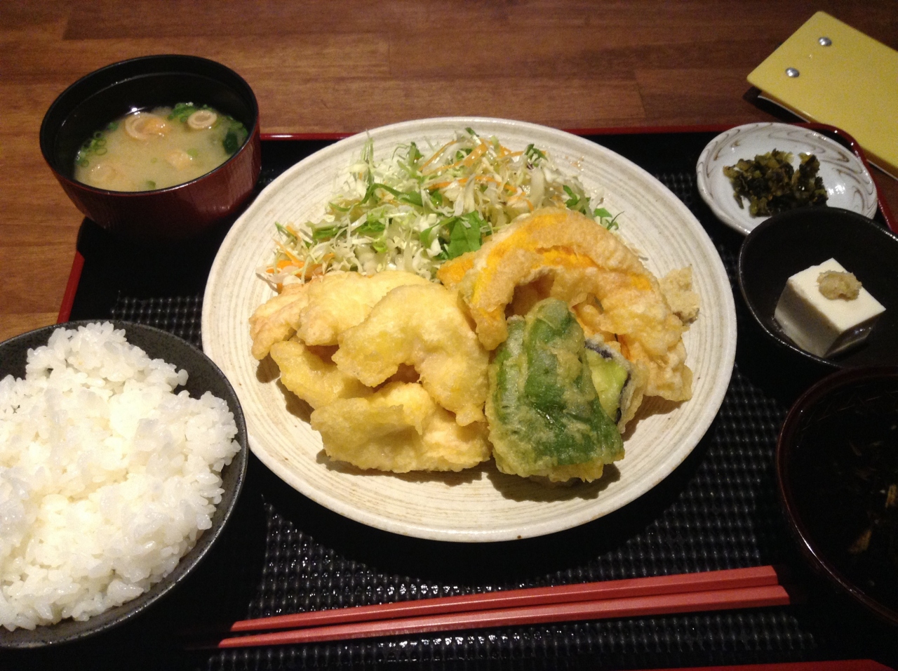 鶏天以外にもかぼちゃの天ぷらが付いてくるのが嬉しいですね。