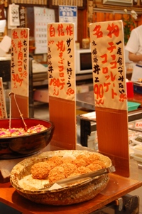 鮮魚店やかまぼこ店、漬物店、京野菜の八百屋、老舗の台所用品店など老舗のお店もあります。
