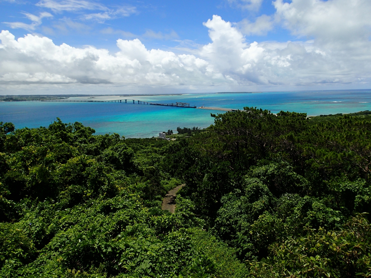 ここの展望台は対岸の宮古島、伊良部大橋、海、亜熱帯原生林など、