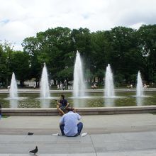 竹の台噴水は、上野公園の中央部。東京国立博物館を望む広場の真ん中にあります。開けた池に、噴水があって、潤いのある空間を見事に演出しています。2012年にリニューアルされたものですが、基本的な構造は変わっていません。上野公園を代表する景色の一つです。
