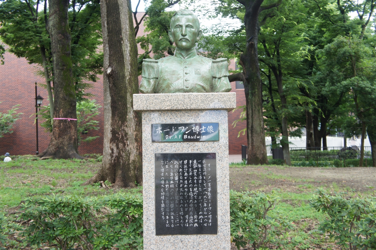 オランダ一等軍医で、医学講師だった人物ですが、寛永寺領であった上野には大学附属病院の建設計画が進められていたところ、その自然が失われるのを惜しんで政府に公園づくりを提言したのだと言うことです。
