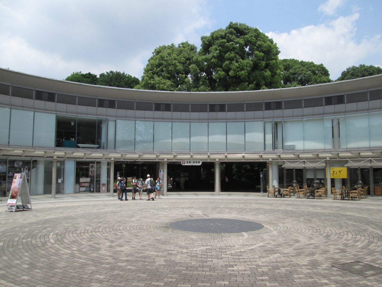 明治宝物殿のある弓形の建物・・・おもしろい形していたので立ち寄って見ました。食事を楽しんだり、”おみやげ”選びを楽しんだり、宝物を見学したりできる場所ですね。明治神宮は結構広いので、散策後の休憩には、うってつけの場所ですよ!!