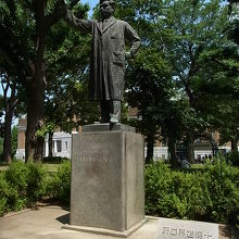 ボードワン博士と、噴水を挟んで反対側。