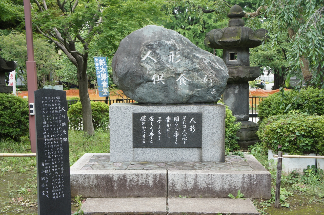 人形供養は、清水観音堂の本堂横。清水観音堂の子育て観音に、子供を授かった等のお礼として身代わり人形を奉納したことが始まりのよう。人形供養大法要は、人形を荼毘に付するもの。この人形供養碑の前で、毎年9月25日に行われます。