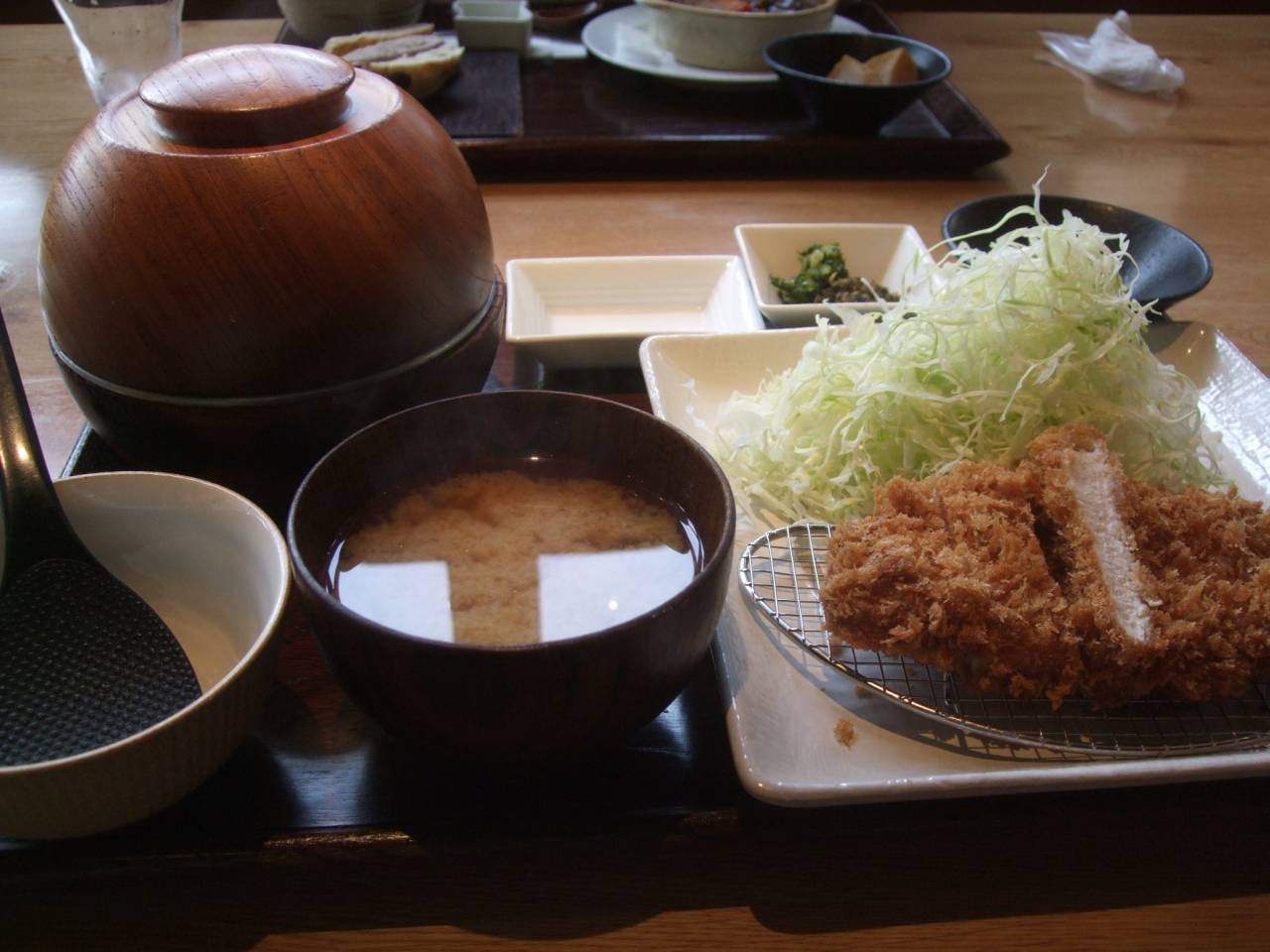 その後、釜炊きではない普通のご飯、お味噌汁、キャベツ(カツメニュー)