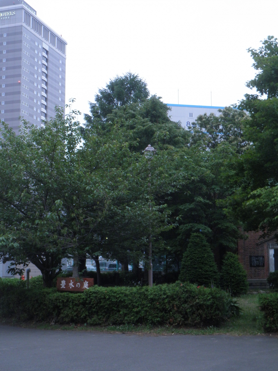 豊水小学校大典記念文庫は、札幌の中島公園の近くにある豊水の庭にポツンとたっています。 近辺には豊水の子の像や資料室などがあります。 近くに流れる鴨々川の岸辺には、まだツツジが咲いていました。 7月になり北国の札幌も暑い日がやってきたので、夜に飲んだ後に散歩して気持ちよかったです。
