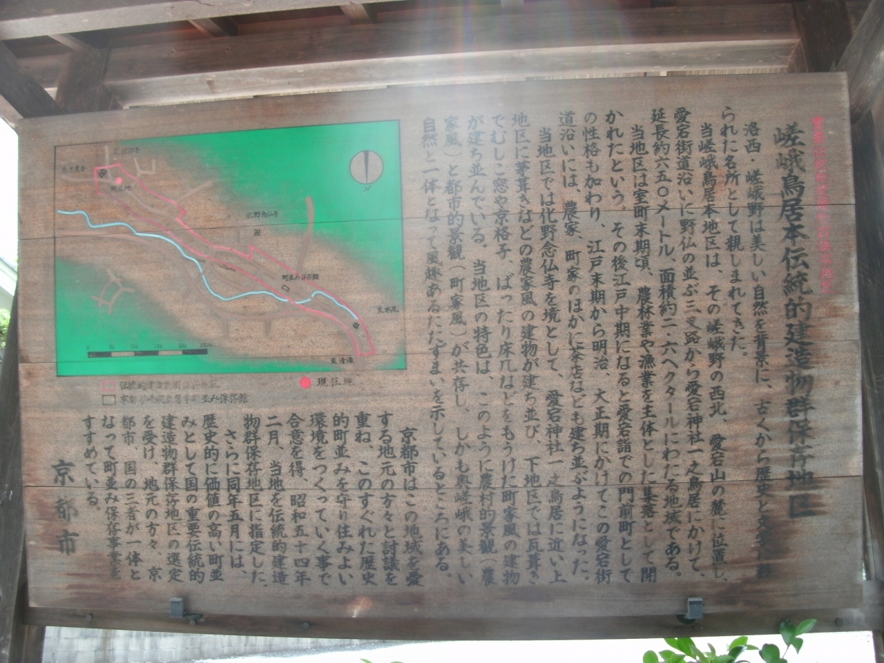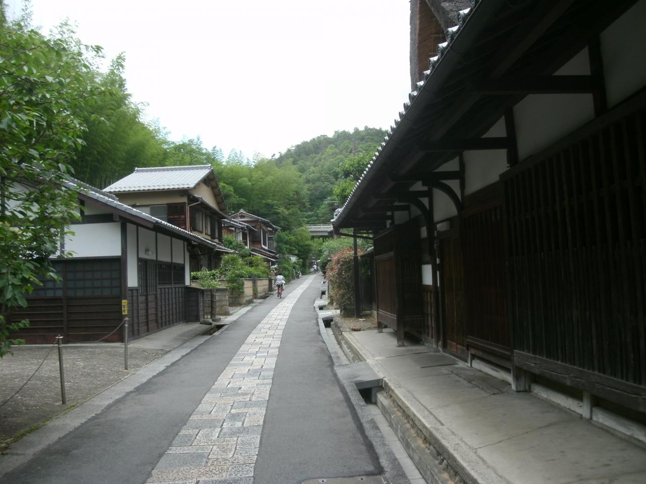 「嵯峨鳥居本」は、重要伝統的建造物群保存地区に指定されていて、茅葺屋根の家や白壁の蔵や町家など昔の町並みが残っていて、宿場町のような雰囲気があります。