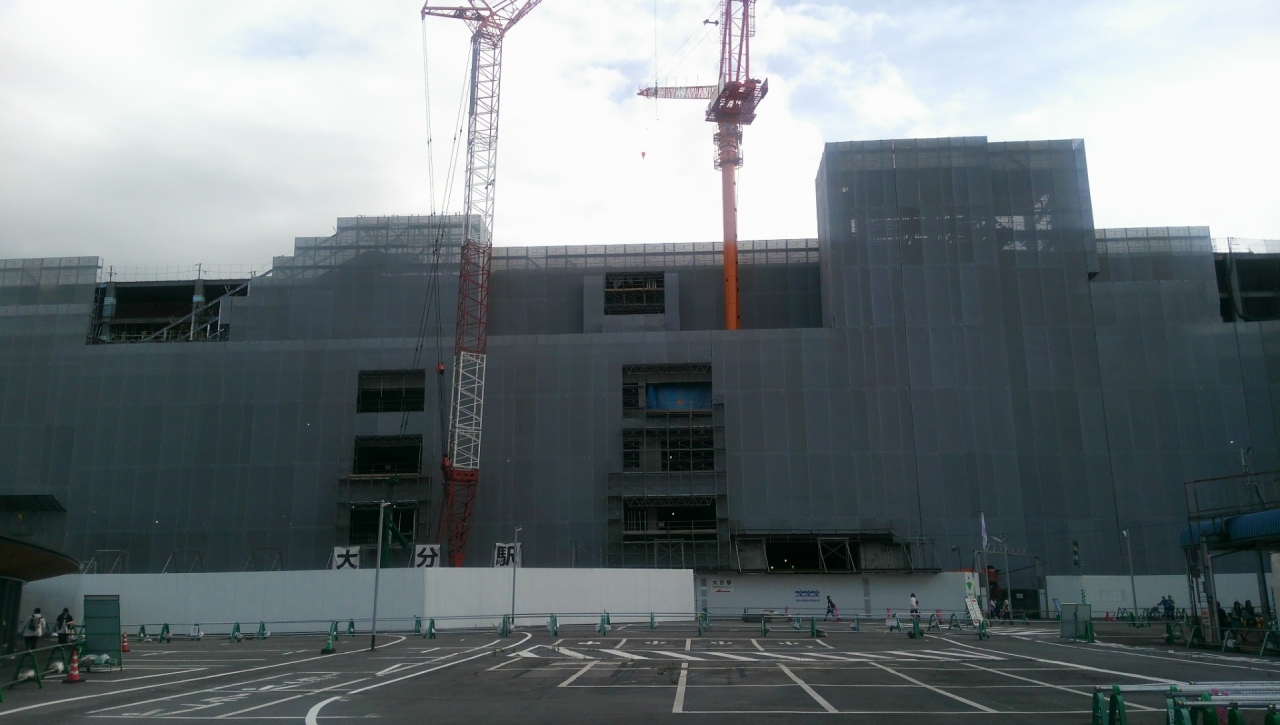 駅に沿ったビル「アミュプラザ予定」も高さも横幅もほぼ形としては骨組みが出来上がってきている様子です。