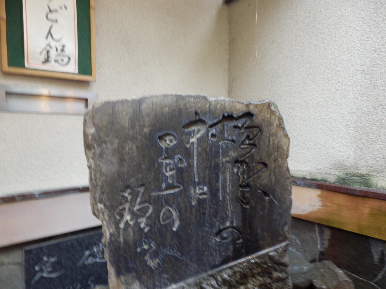大阪最大の繁華街である道頓堀、今井という老舗のうどん店玄関がに岸本水府の作品が