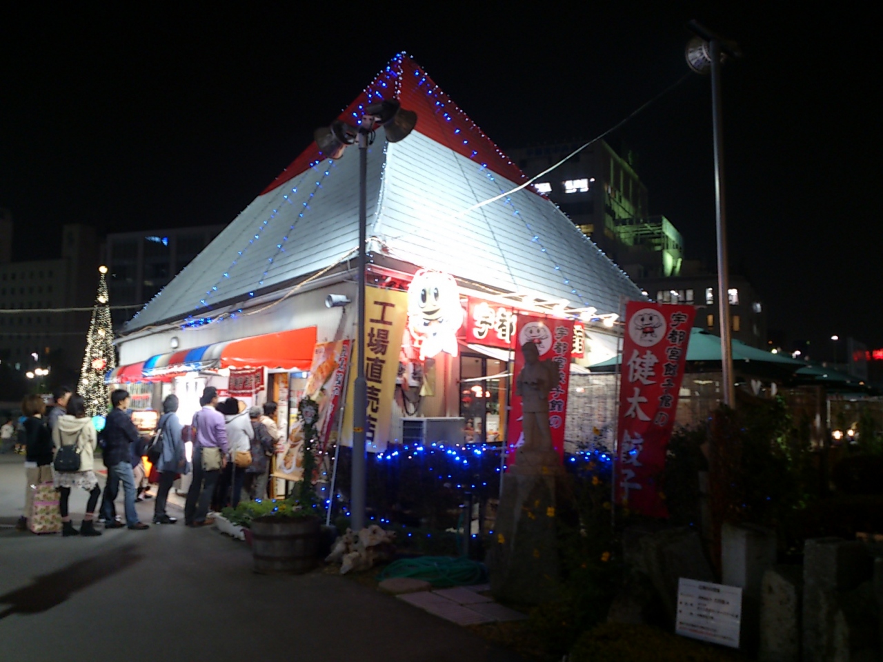 宇都宮駅前広場前で餃子をツマミに飲む!