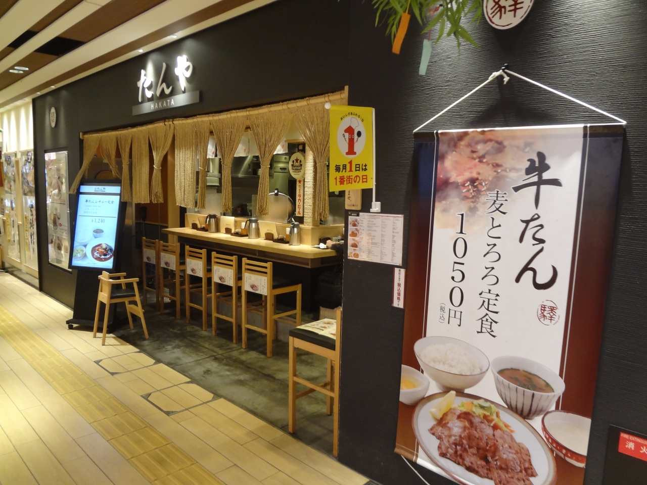 博多1番街にある牛タンのお店です。ここの麦とろ定食は麦ごはん、とろろ、スープ、それにメインの牛タンが付いて税込み1050円とお得なセットでお勧めです。訪れた次官が11時過ぎだったのでとても空いてました。恐らく12時を過ぎるとかなり混雑してくると思われます。