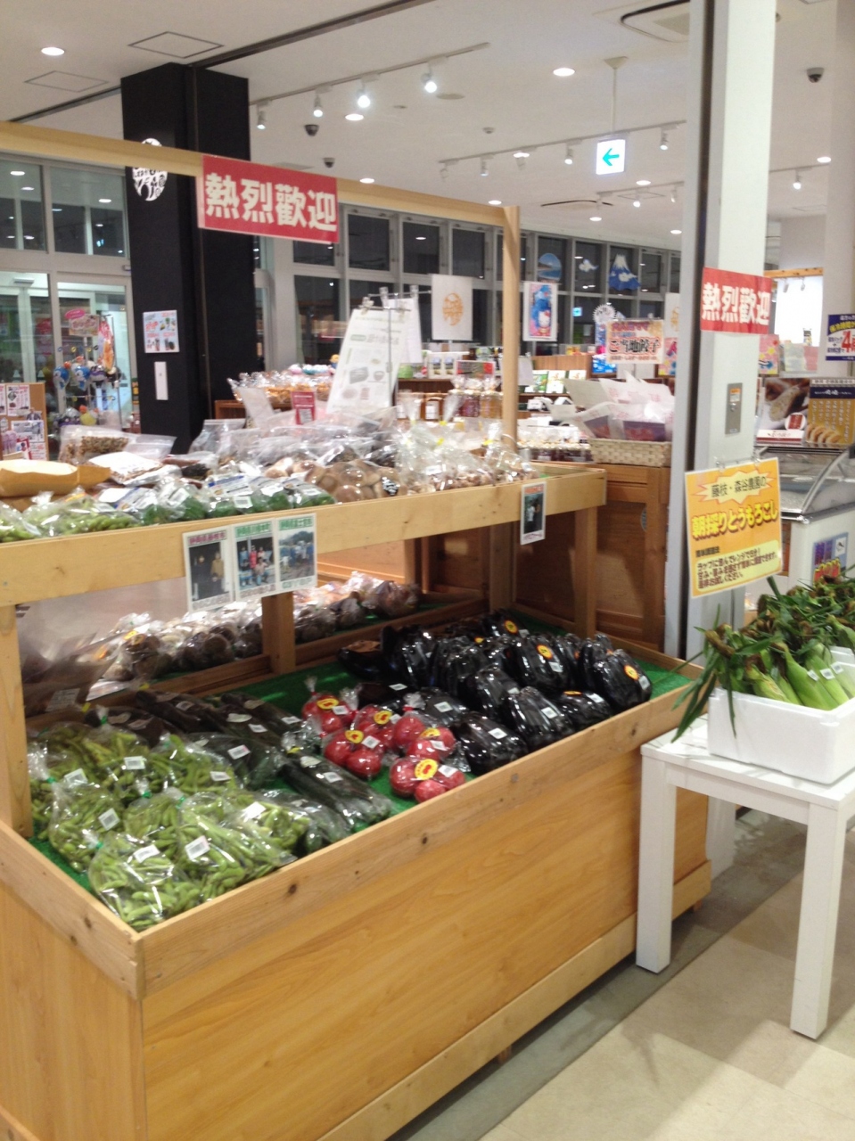 新鮮野菜やトウモロコシが売っていて、帰り道だったら購入したかったです。