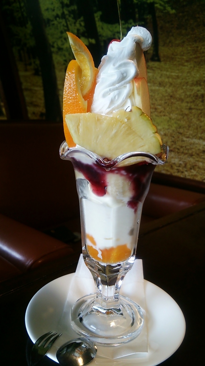 パンケーキセットとフルーツパフェをオーダーしました。ブレンドコーヒーはとても飲みやすくおいしかった。パンケーキはなんだか表面がちょっと硬くて、もっとフワフワがよかったな。フルーツパフェは生クリームがとてもおいしかったらしいです。ちょっと高めだけど、夜12時までなので遅い時間にお茶したいときはまた利用しようと思います。