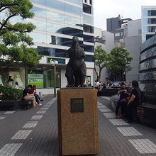 ゴジラ像が有ります。日比谷シャンテの正式名称は東宝日比谷ビルとの事で、東宝が生んだ誰もが知っている「ゴジラ」の像が展示されています。