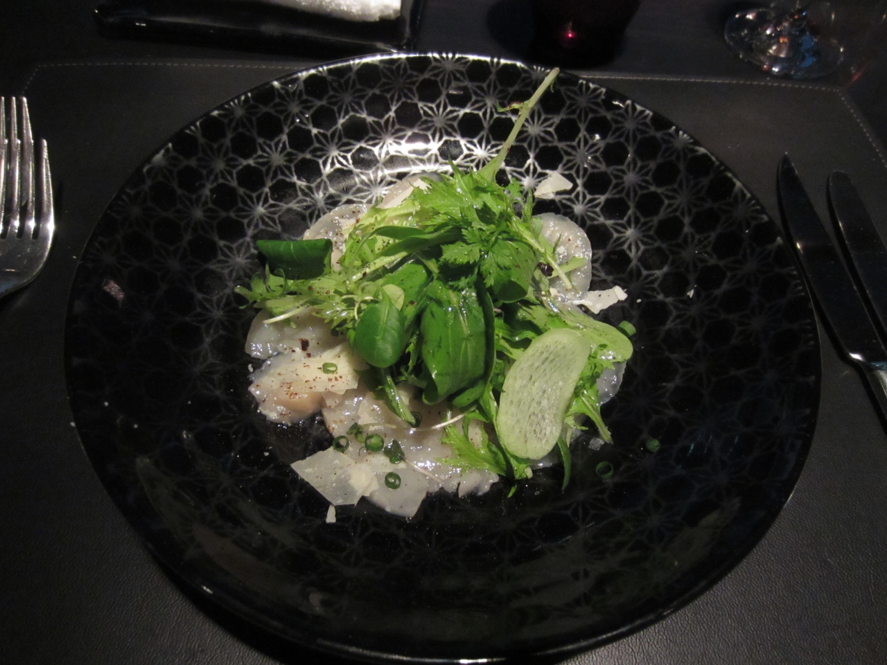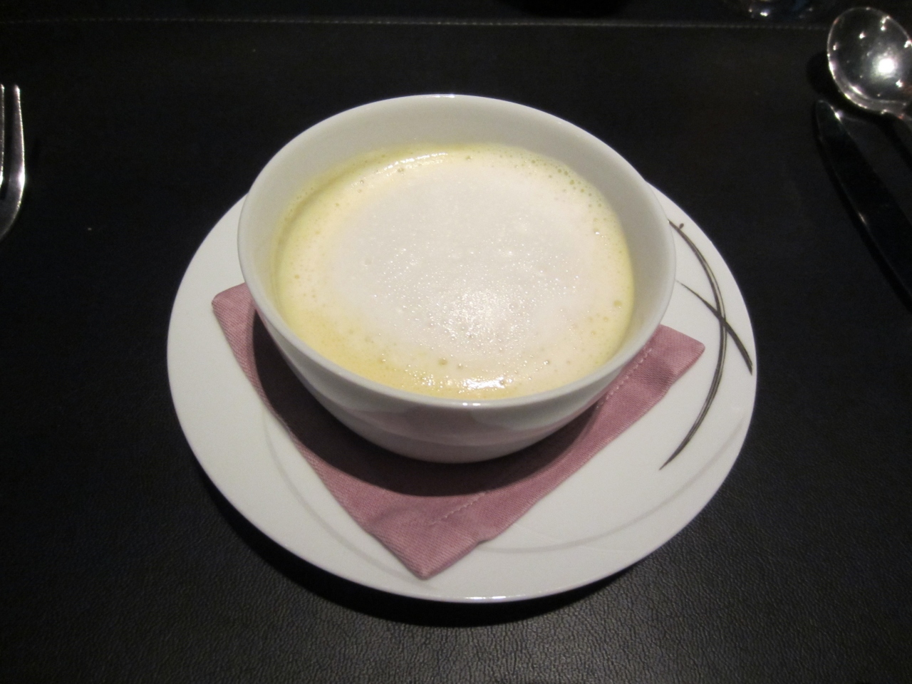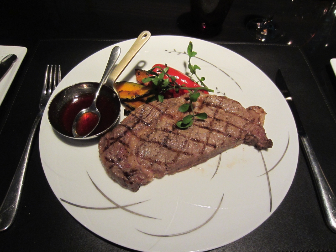 前菜(ほたてのカルパッチョ)、スープ(コーン)、メイン(アメリカビーフ200g)、デザート(パンナコッタ)