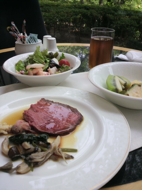 メインはローストビーフです。一皿に1枚ずつ切り分けてくれるシンプルかつ本格的なものでした。また、正午からバイオリンの生演奏があり、非日常的な優雅なランチタイムを過ごせました。