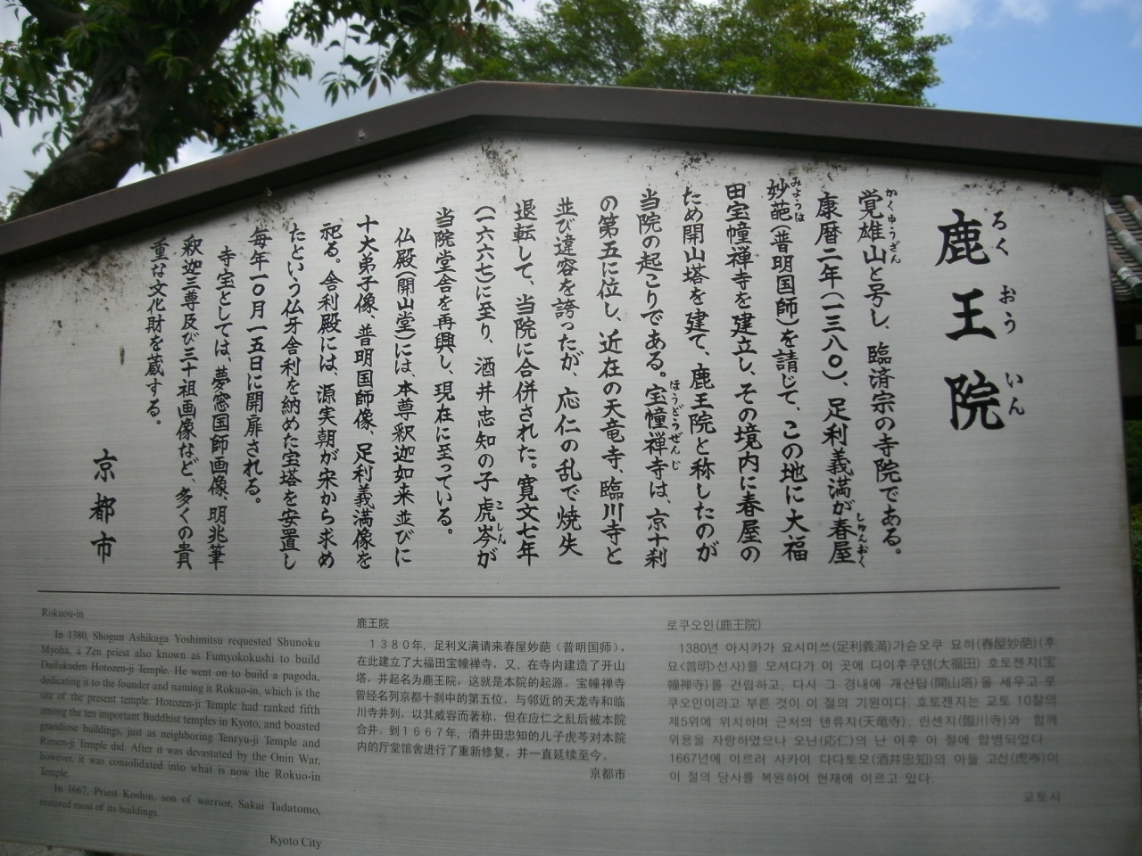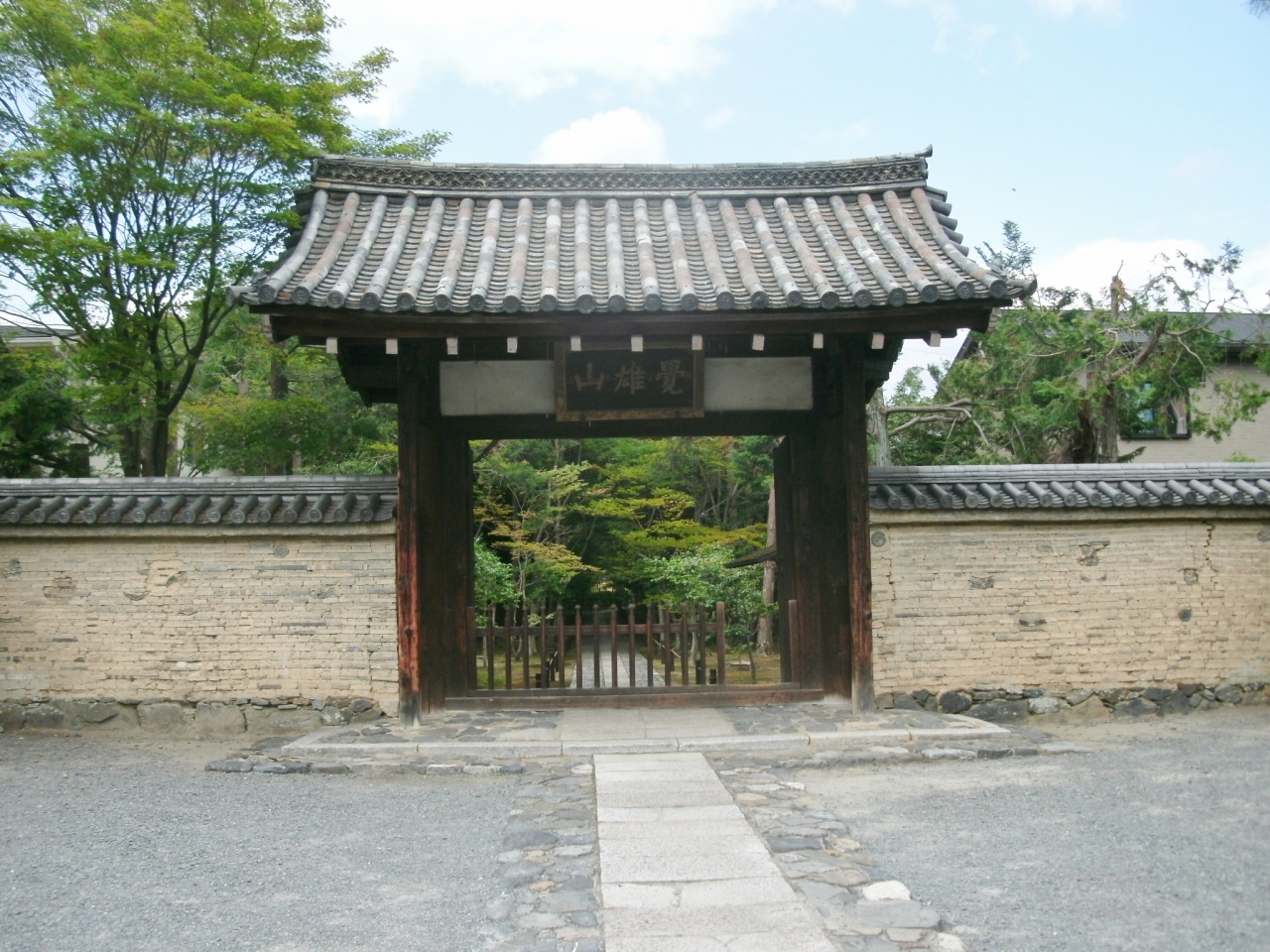 足利義満が建立し、応仁の乱で廃絶した宝幢寺という寺の塔頭で、山門に掛けられた“覚雄山”の額は、足利義満が二十四歳の時の自筆だそうです。