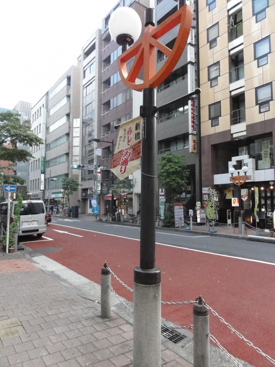 新橋駅から5分ほど歩き、日比谷通りに平行した通りです。駅前の雑踏から離れ落ち着いた雰囲気の通りです。片側一車線の通りに並木がある歩道が両側にあります。外堀通りから離れるに従って、沢山あった飲食店もまばらになり変化が楽しめる通りです。