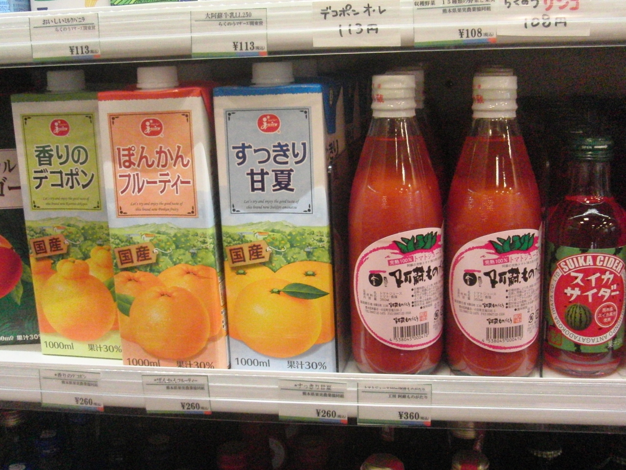 熊本と言えば「くまもん」と「辛子レンコン」くらいしか思いつきませんでしたが、銀座熊本館の中を覗いてみると、、大好きなデコポンのジュースやポンカンのジュースが売られていました。