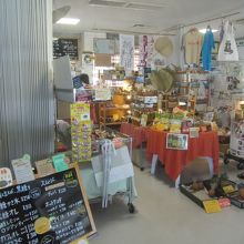 とても小さな一画ですが、品ぞろえは充実。レギュラーコーヒーや生ジュースも販売していますが、川満スーパーにも置いていない島内産品が置かれているので、船を待つ間にお土産を調達することができます。