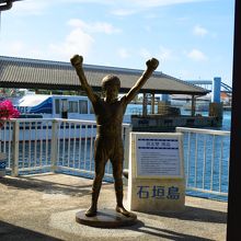 桟橋の入口に、いつの間にか具志堅用高の銅像が建てられていました。