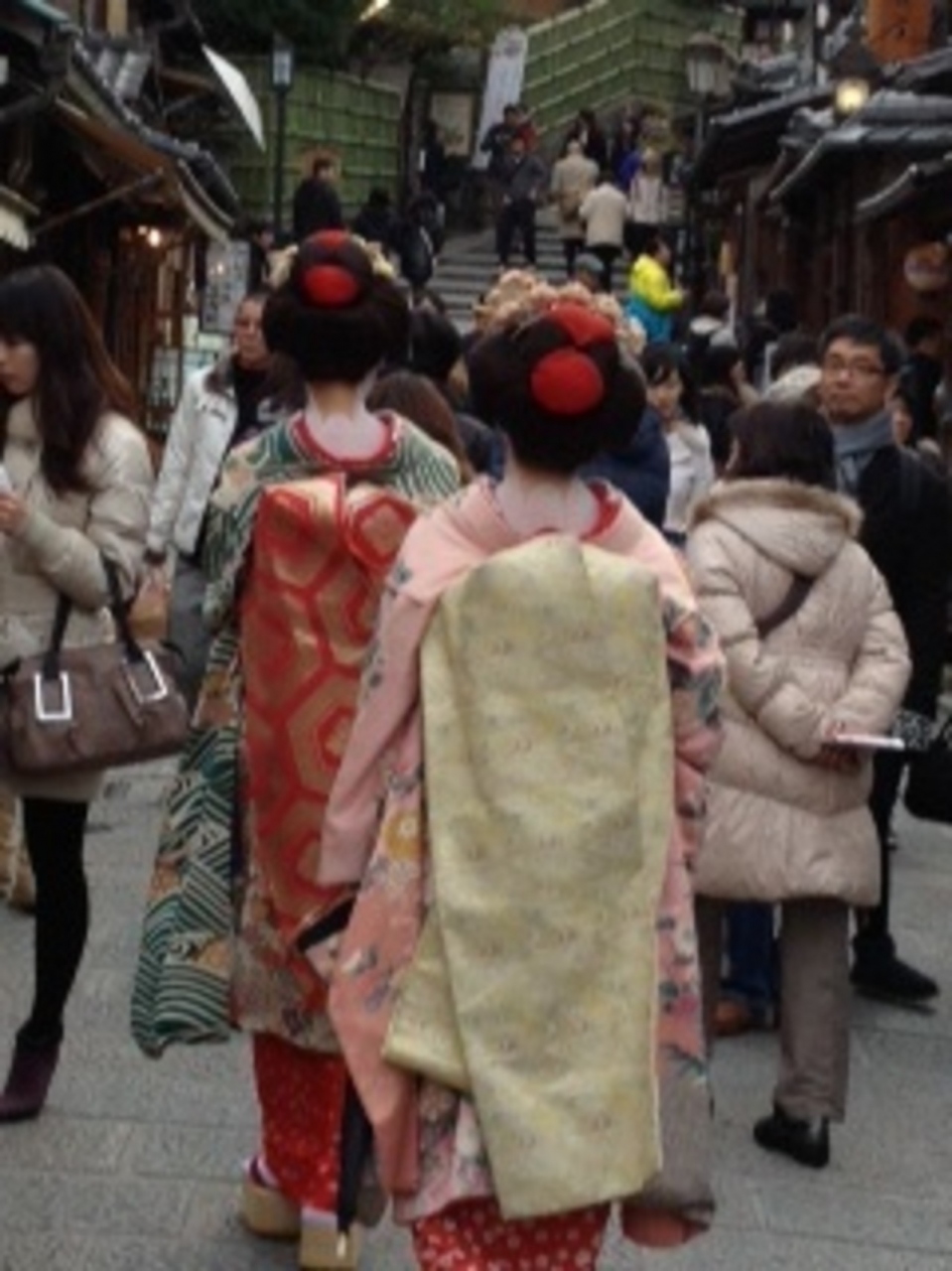 清水寺から、高台寺までの散策ルートであるためか、歩く人は多い。お店を観て回るのも楽しいが、歩いているひとを見るのも、また、面白い。ただ、ここで転ぶと二年以内に死ぬという、警告的な言い伝えがあるので、注意して歩こう!