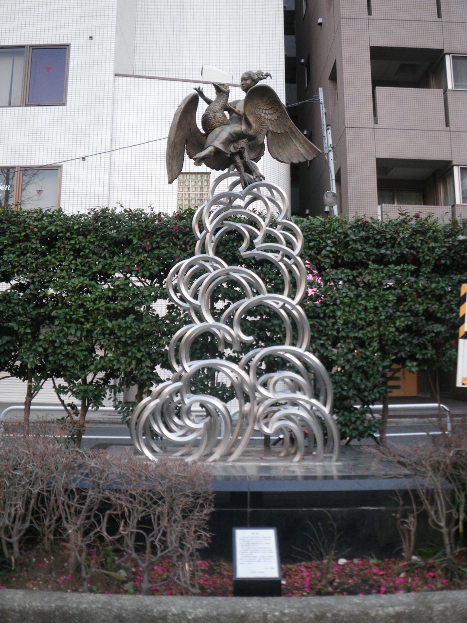 麻布十番にある網代公園の中にありました。戦災から復興したこの地域のことを念頭にいれて1993年に制作されたもので、愛と夢、そして生命あるすべてのものとの共生と合歓を表現しているそうです。夕方の公園は元気に走り回る子供たちの笑い声が響いていました。