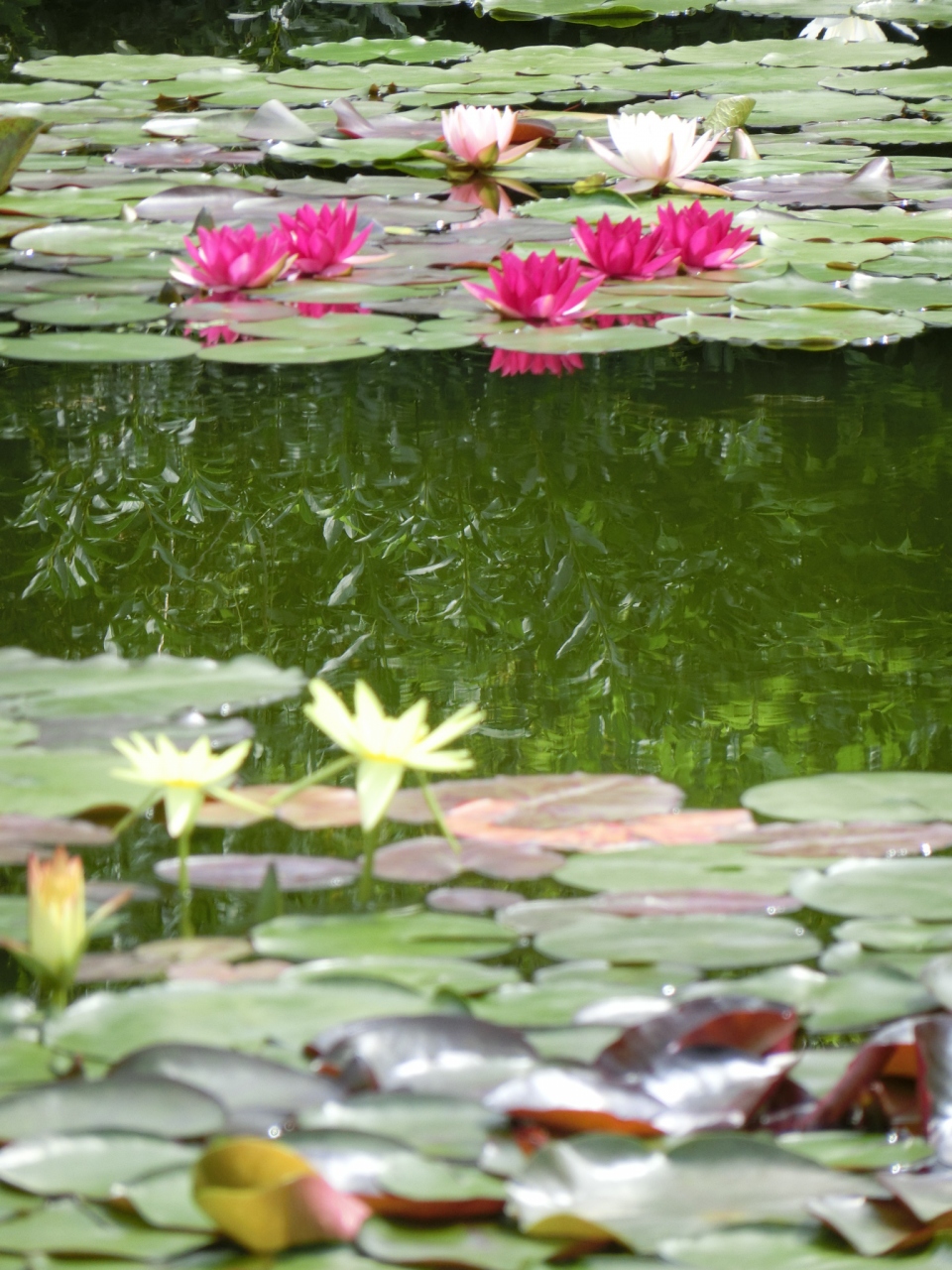 まだ脳裡に水蓮の花々や 回りの木々の景色が焼き付いています。以前から行きたい所の一つで 想像以上に素晴らしい景色でした。青い水蓮が咲いているの情報と共に 岡山から 車を飛ばしました。モネのこだわりの庭 そのもので 以前みた絵や本そのものに感じられました。うっとりと しばしたたずんでいました。花の庭も 珍しい初めて見る植物もあり こちらも感動しました。