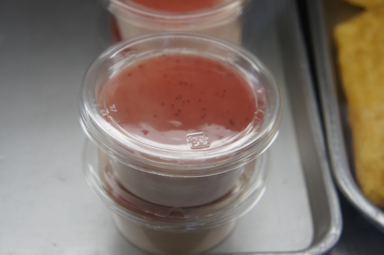 トーフショップ むさしやは、本町センター商店街の中ほど。豆乳プリンの看板が出ていて気になったのですが、それは売り切れ。代わりに豆乳ババロアをいただきました。しかし、これもなかなかうまいじゃないですか。ちょっと固めに仕上げたババロアに、甘ーいイチゴのジャムが絶妙の組み合わせ。豆腐屋さんでも、センスあるなあと感心しました。