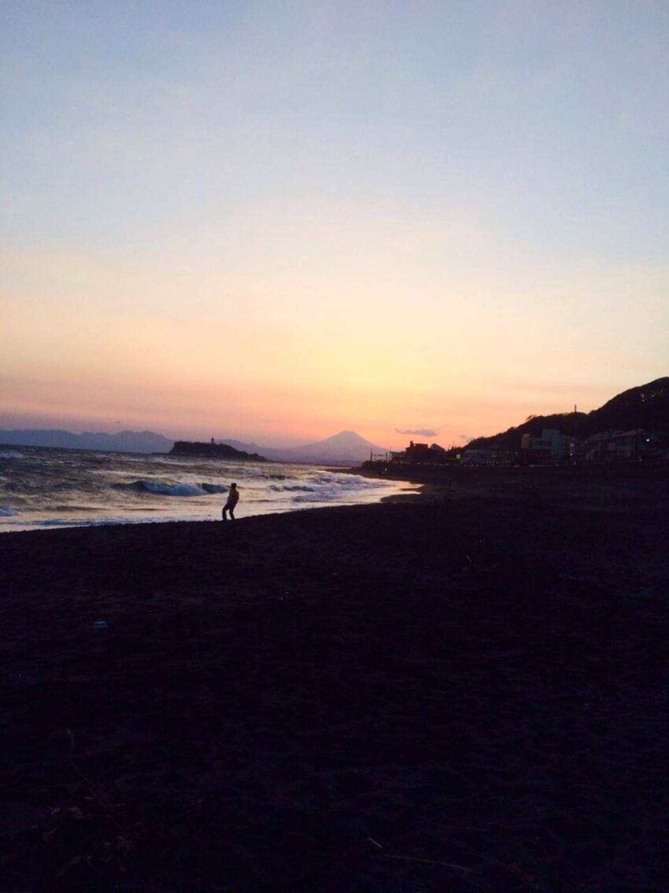 夕焼けの稲村ヶ崎と温泉