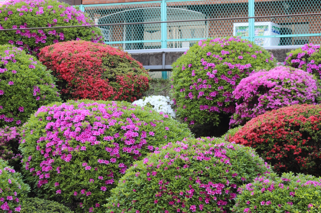 つつじの植栽が綺麗な駅です