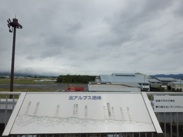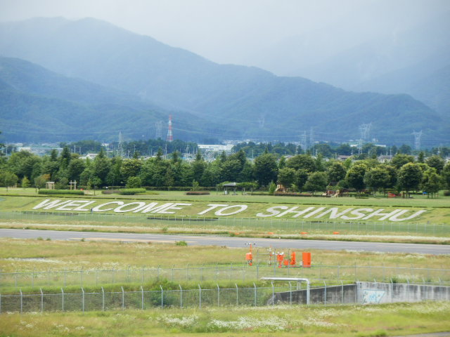 空港の周りには、ぶどう農園が広がり、北アルプス連峰の壮大な自然、
