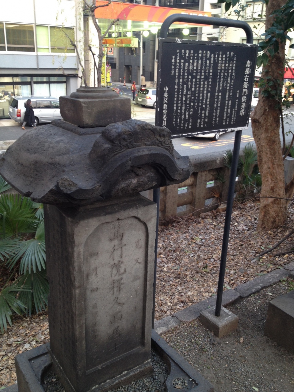 佃島の開基である森孫右衛門の200年忌にあたって子孫が建立したお墓です。