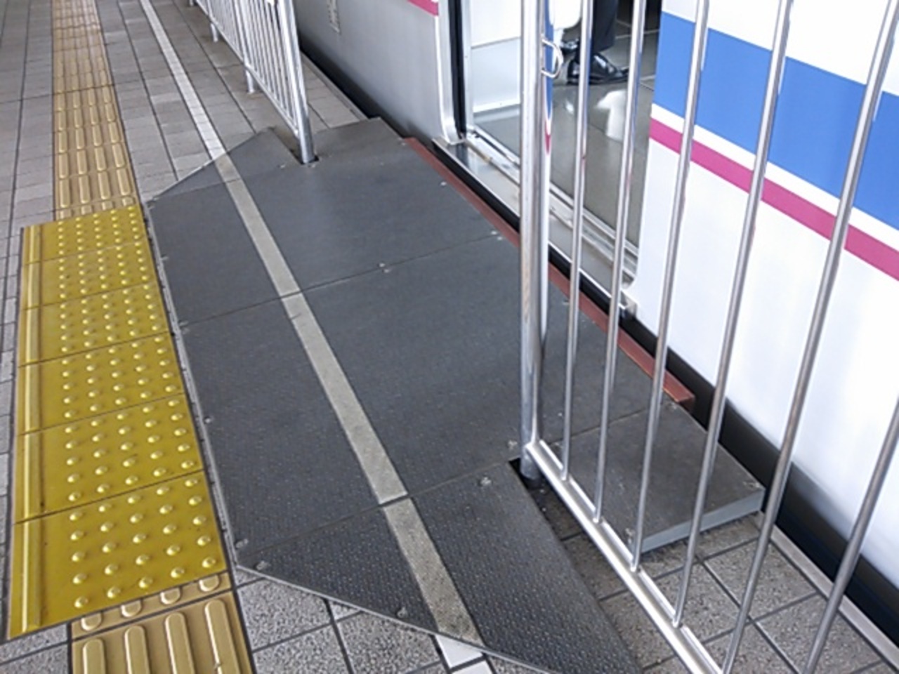 全駅そうなっているかは確認していないのですが、大阪空港駅で下車の際に気づいたのですが、ホームとの段差をなくすために、ホーム側に工夫がされていました。