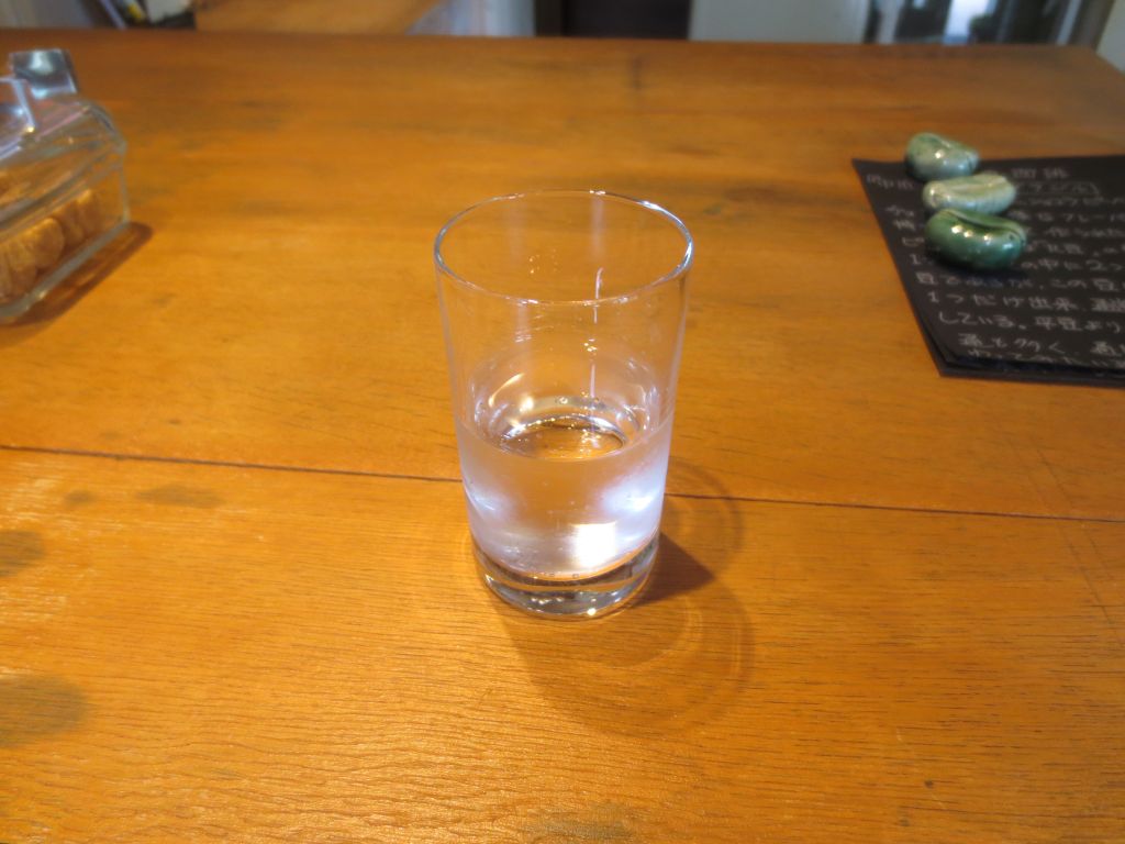 まずは小さなコップに透明な液体が注がれて出てきます。炭酸水とのこと。
