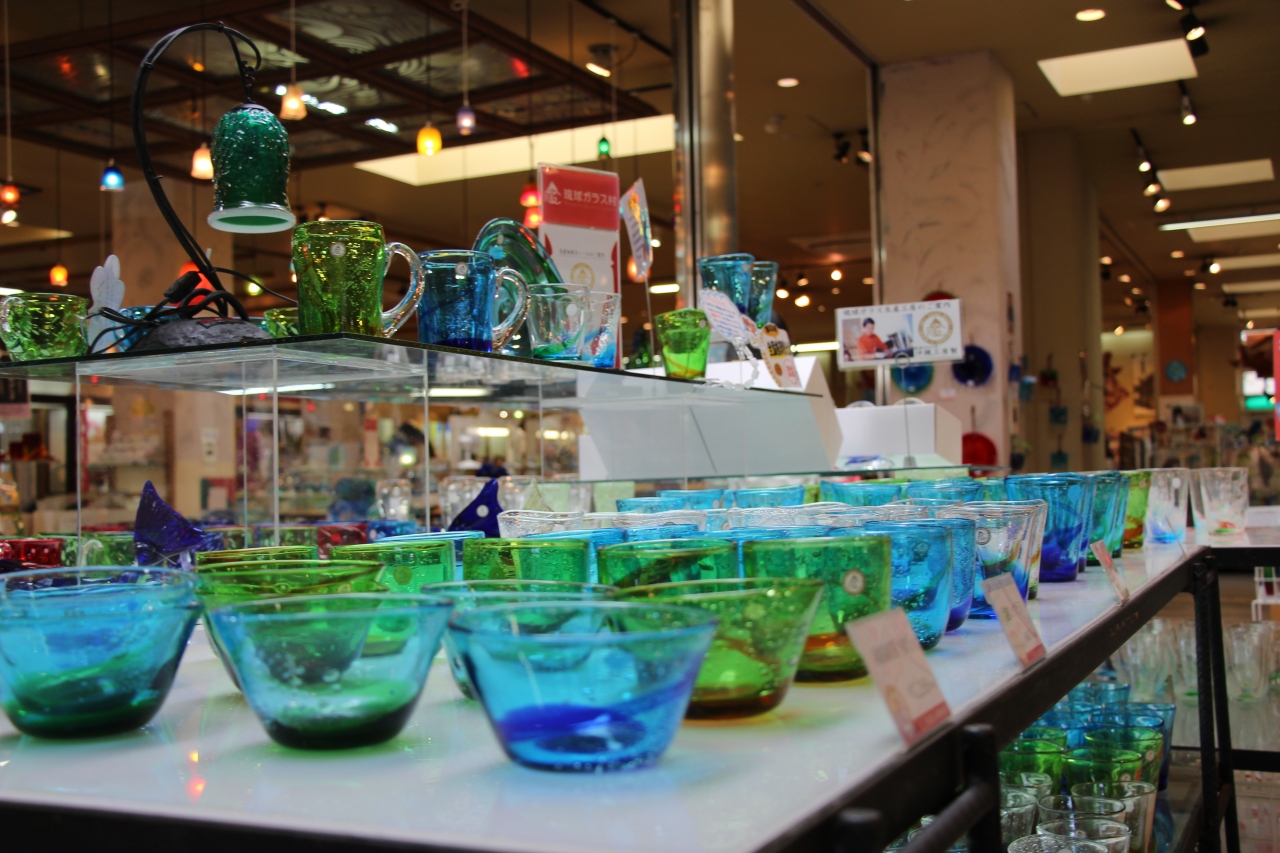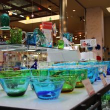 ガラスの制作現場が見え、ショップはガラス製品が一面に並んでいて見ごたえ有り。