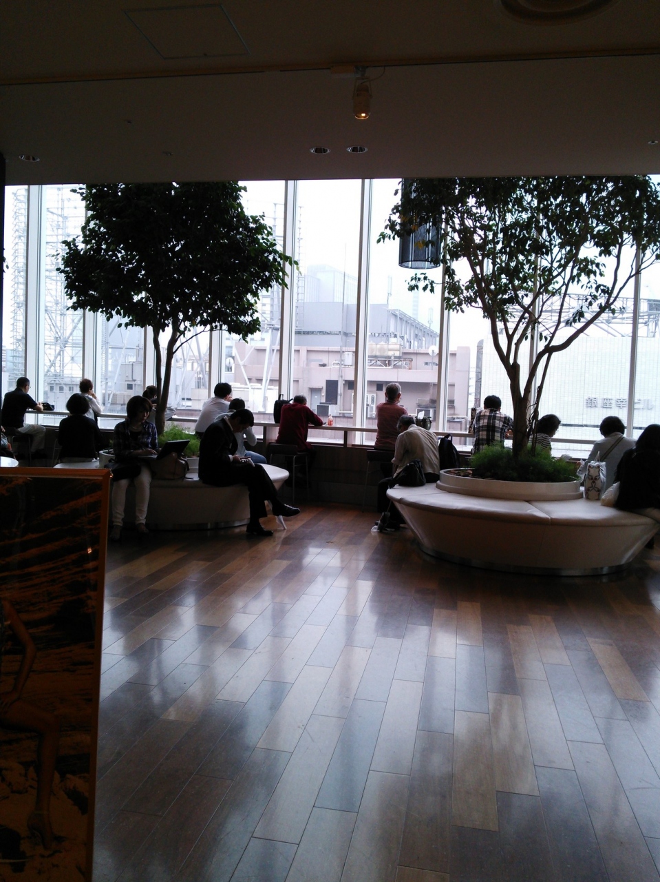 窓際のカウンターは長いのですが座席数が少なく、テーブルと椅子も少ないので、平日いつも満席です。昼寝をしたりPCを使用している人もいて、なかなか席が空きません。外には広いテラスがあるので、季節によっては外に座るのもいいです。