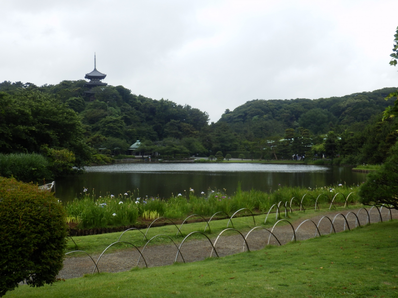 本牧にある三渓園は花菖蒲でも有名です。広大な敷地の三渓園ですが、その大部分を占める大池の脇に花菖蒲が植えられています。入口から鶴翔閣へ行く途中にあり、大池の奥に見える三重塔を背景に含めて撮影するのも良いと思います。