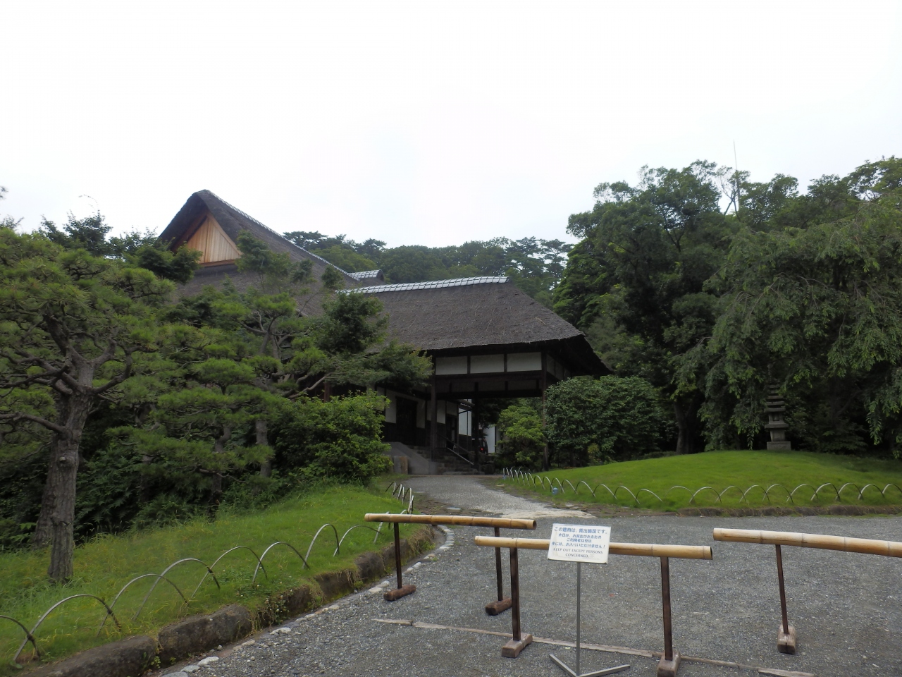 三渓園の入口から池沿いにまっすぐ進み、一番最初に見えてくるのがこちらの建物です。原三渓の住居として建てられたもので、上から見ると鶴の形をしているそうです。建物は貸し出されていて、結婚式場としても人気のよ うです。6月の休日に訪れたら、結婚式が行われいたため見学できず残念でした。