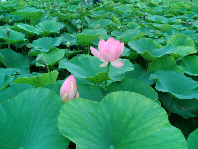 そんな花に合わせてか、訪れる人も午前中が多いようで、公園の売店なども午後になると店じまい体制になります。展望塔のある会館も、16時半で閉館してしまいます。まだまだハスの花は見られますが、暑くもなる季節です。出来るだけ、午前中の見学をお勧めします。